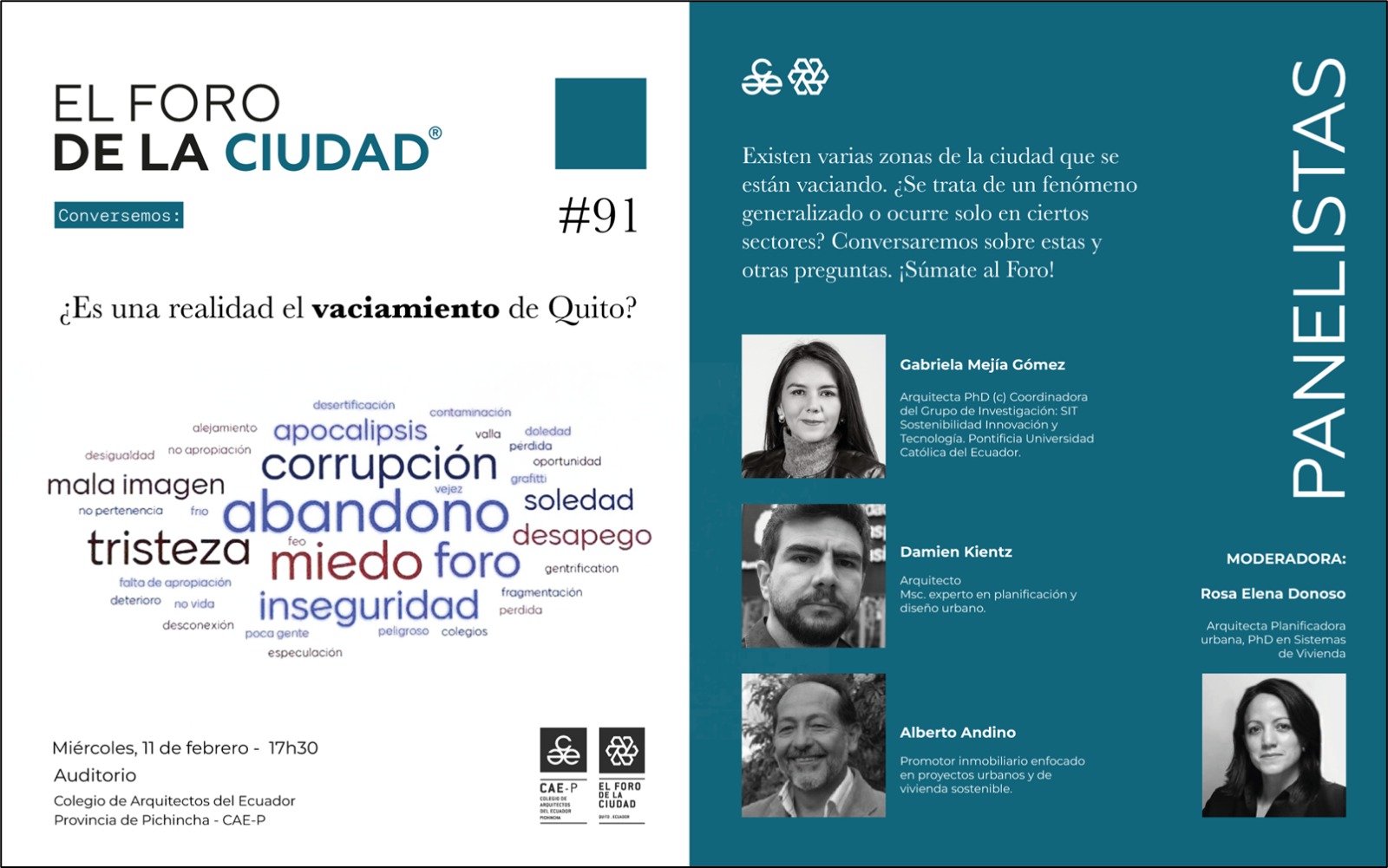 Instancia líder y referente nacional como espacio de reflexión, discusión y debate del Colegio de Arquitectos de Pichincha CAE-P desde donde se aborda el tratamiento técnico de aspectos relevantes de la problemática urbana y territorial.